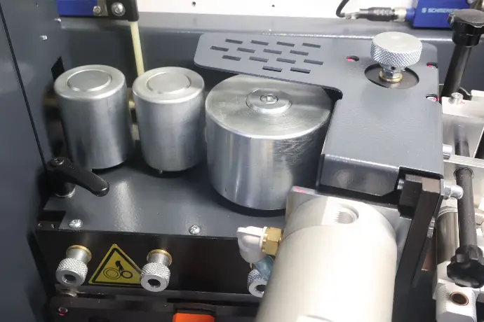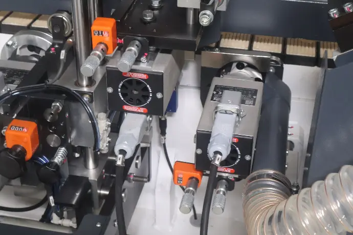 The Cehisa Evo Pro Elite capabilities that outshine its price point. Packed with essential features demanded by the market and customers, it includes Diamond Pre-millers with interchangeable tips, an efficient Hot Melt glue system, Twin end saws, Top and bottom radius trimmers, Corner rounding, and final radius and flat scraping functionalities.